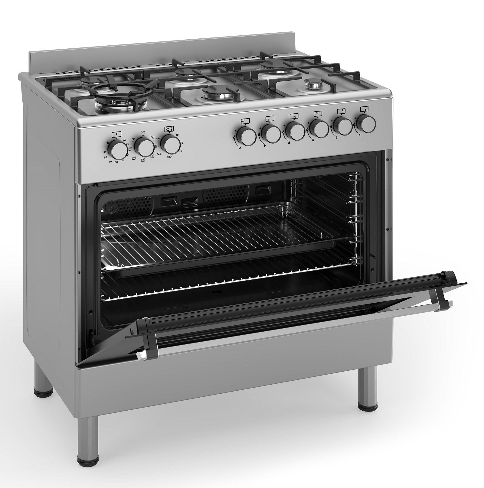 Ferre 90cm Dual Fuel Range Cooker & 50cm Pyramid Chimney Hood Pack - Stainless Steel