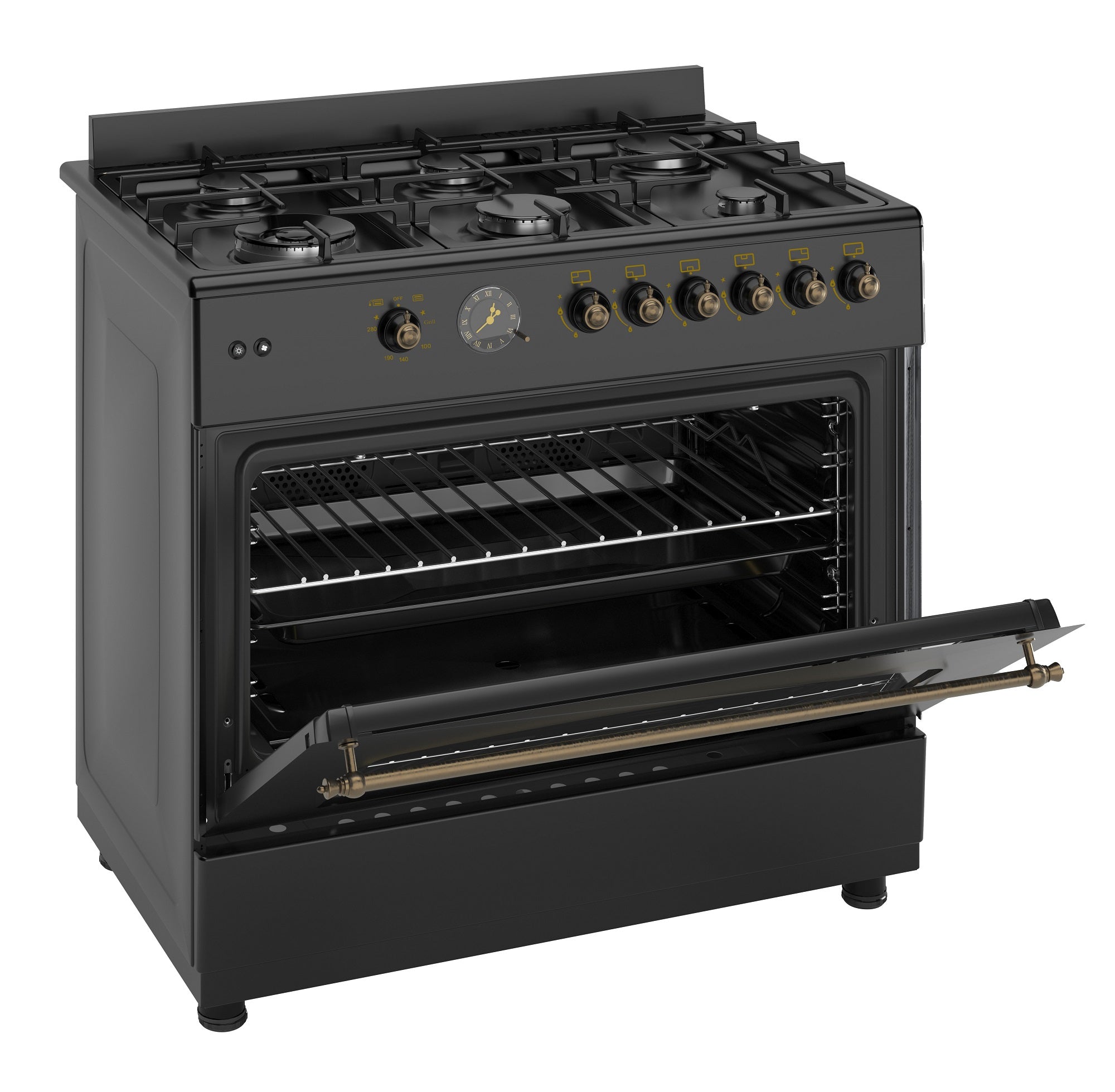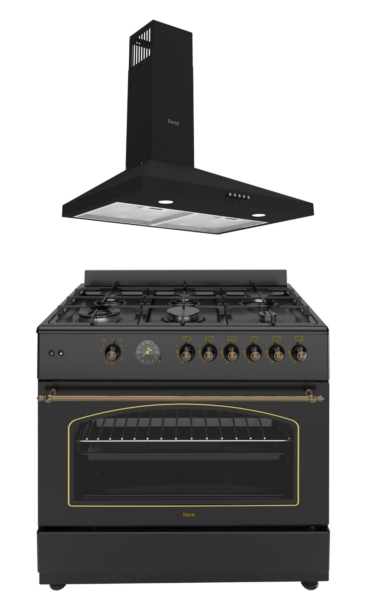 Ferre 90cm Gas Range Cooker & 60cm Pyramid Chimney Hood Pack - Black