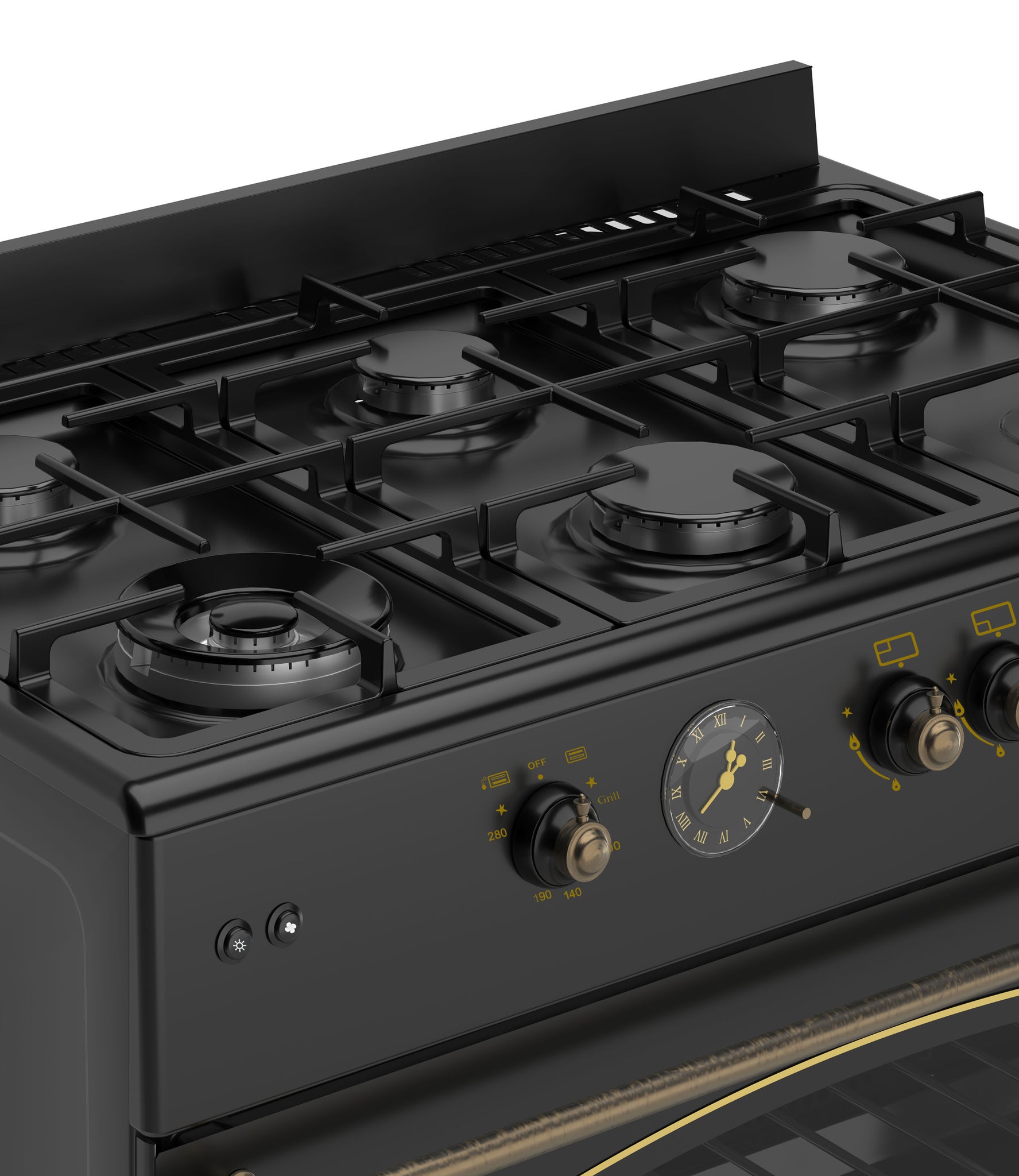 PH600-INV-PBL 60cm SilentArt Pyramid Chimney Hood & F9S60GF-BL-RETRO 90x60cm Gas Range Cooker With Double Turbo Fan