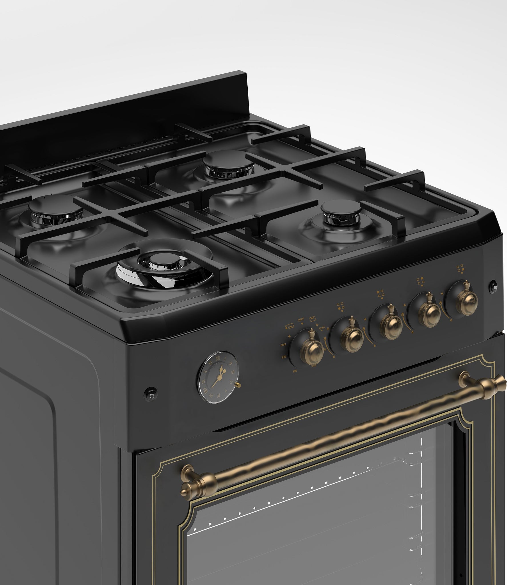 - 4 Burner (1 Wok) Gas Hob & Gas Oven